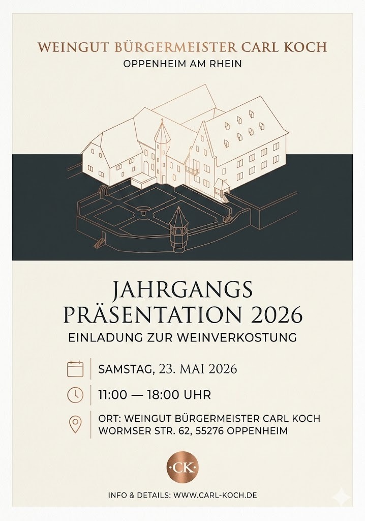 Am Samstag, den 23. Mai, öffnen wir von 11:00 bis 18:00 Uhr die Tore unseres Weinguts in Oppenheim für alle Weinliebhaber und Freunde des Hauses.